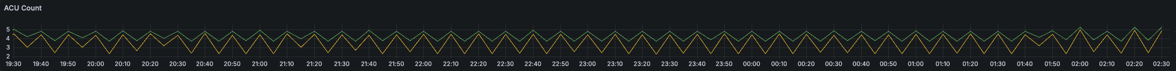 하지만 모니터링 대시보드에는 눈에 거슬리는 현상이 발생하기 시작했습니다. 이 단순해 보이는 동기화 배치가 돌 때마다 DB의 ACU가 4~5 부근으로 주기적인 스파이크를 치며 '톱날' 모양의 그래프를 그리고 있었습니다.