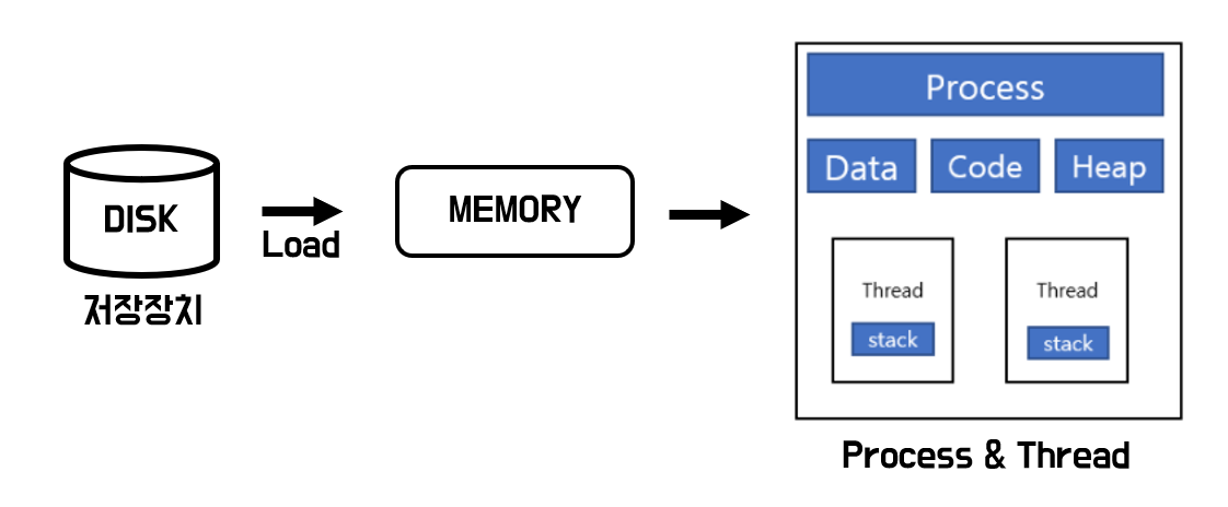 프로세스는 저장장치에 있던 프로그램을 메모리에 적재한 동적 개체입니다.
