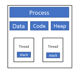 - 프로세스 내의 주소공간이나, 자원들을 같은 프로세스내에 스레드끼리 공유하여 실행 가능하다.