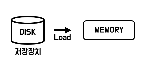 프로그램은 저장장치(DISK)에 저장되어있지만 메모리에는 올라가있지(LOAD) 않은 정적인 상태를 의미합니다.